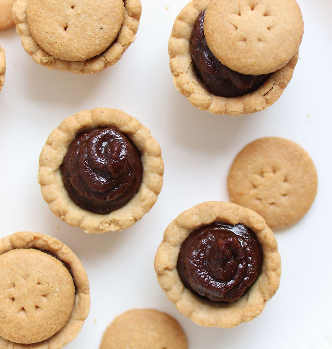 עוגיות בצק פריך ללא גלוטן ממולא בשוקולד בטעם נוטלה ללא סוכר.