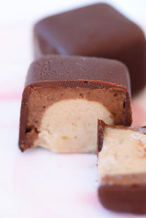 מחלצים את קוביות הגלידה שקפאו, וטובלים כל קובייה בשוקולד הנוזלים, מנערים בעדינות את שיאריות השוקולד ומסדרים על נייר אפייה.