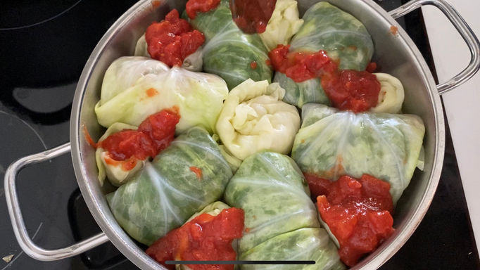 את הרוטב יוצקים מעל הכרוב ומעבירים לתנור למשך שעה לפחות.