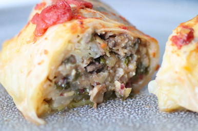 כרוב עם מילוי בעל מרקם "בשרי", עשיר בחלבונים מקטניות ורוטב בתיבול מודגש. חגיגה של טעמים וצבע.