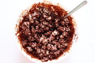 מעבירים את הפופקורן המוכן לקערת השוקולד המומס ומערבבים כך שכל הפופקורן מצופה בשוקולד באופן אחיד